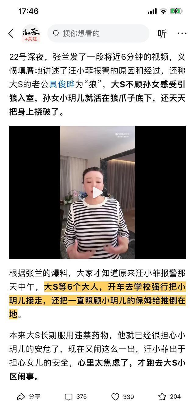 手机搜狐体育彩票银河乐章娱乐怎么样太平洋正网手机搜狐体育彩票_ 汪小菲张兰子母一个报警一个放视频王人指证大S长久滥药处于迷幻气象!大S终于自证白皙了,当天大S讼师发出公告本色包括大S仍是拿毛发进行了毒理轻松,检测叙述里明晰标明大S莫得不问题,况兼大S经国法轻松的不啻是毛发回有尿液样本!